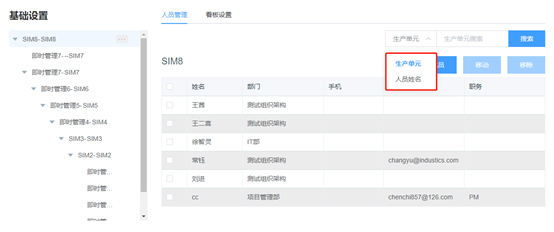 选择左侧SIM生产单元,可以在页面上勾选人员(可多选),点击【移动】,选择新的生产单元,被选择的人员就会被移动到新的生产单元里去了。
