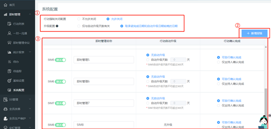SIM-015:系统配置中的不允许关闭和允许关闭什么含义?