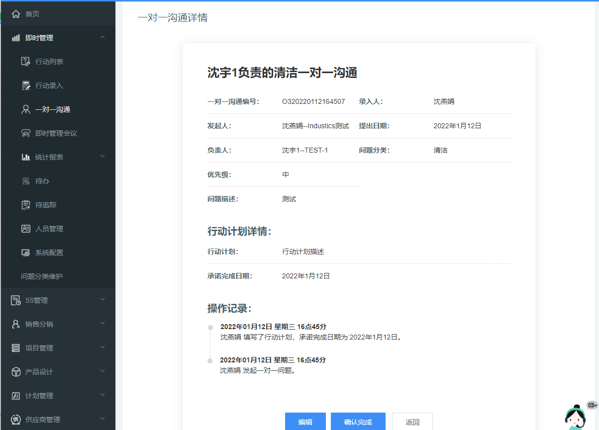 对生产过程中提出的行动问题做统一记录、监控。点击【查询】显示沟通详情